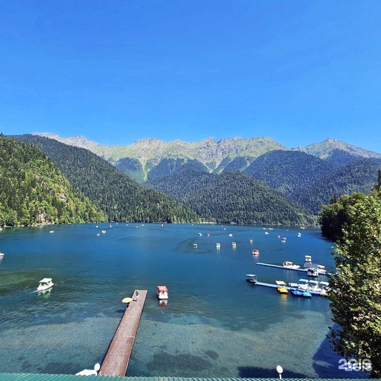 Озеро Рица восхищает в любое время года, даже зимой, когда оно покрыто льдом. Водоём, как хамелеон, меняет цвет в зависимости от сезона. В мае его поверхность зелёная с желтым оттенком, а осенью — почти синяя. Такой эффект дают впадающие в озеро реки и живущий в воде фитопланктон.