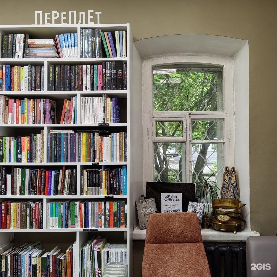 В этом купеческом доме в XIX веке был дом призрения, позже госпиталь, затем — коммуналки. Дух коммуны не отпускает: книжный с удовольствием делит здание с Центром современного искусства «Огонь» и колледжем культуры. Двор «Переплёта» — важная точка на культурной карте города. Тут проходят фестивали, встречи с авторами, книжные распродажи-«гаражки».