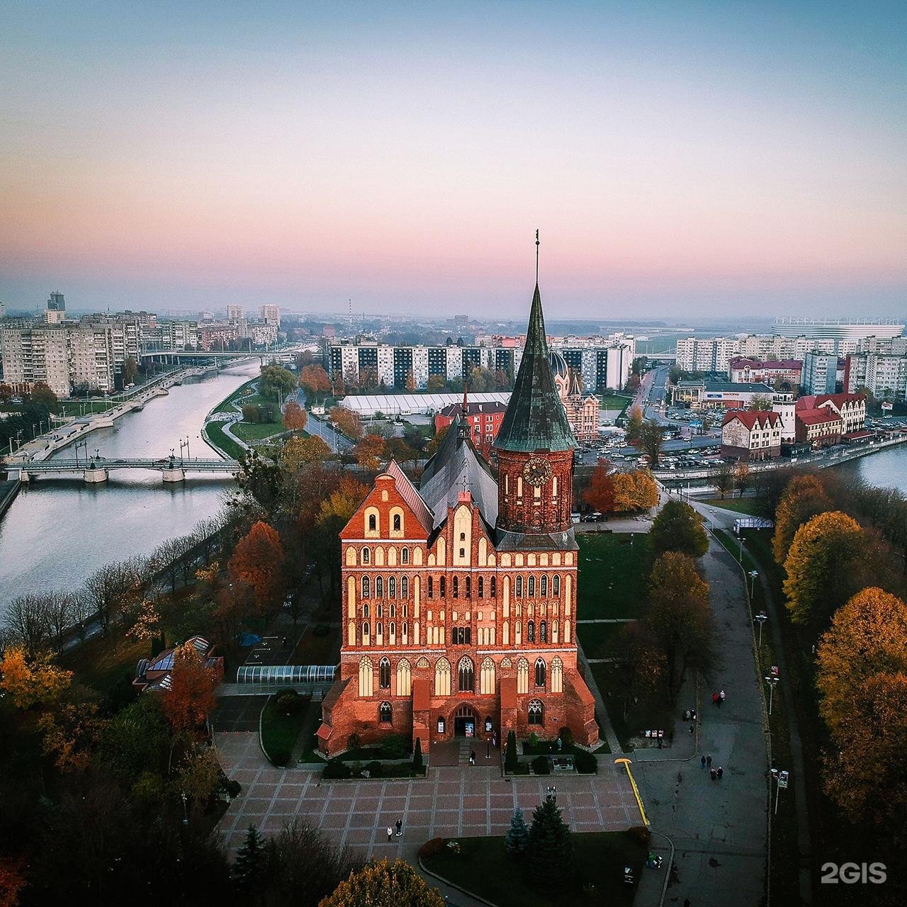 Именем философа Иммануила Канта в Калининграде называется и университет, и сеть магазинов, и кафе «Булочки Канта», и остров в центре города. На остров легко перейти по Медовому мосту. Сейчас здесь только Кафедральный собор и Парк скульптур, в котором местные устраивают пикники. Но если бы мы вернулись на сто лет назад, мы б попали в густонаселённый городской район. Ещё раньше остров официально был отдельным городом.