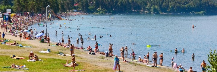 Пляж в четырёх километрах от Миасса в посёлке Тургояк. Пляж песчаный, но в некоторых местах — с маленькими камнями, поэтому позаботьтесь о пляжной обуви. Часть пляжа покрыта деревянными понтонами, есть шезлонги, небольшие столики и скамейки, кабинки для переодевания — в общем, цивилизация. Есть и более дикая зона, где меньше людей.