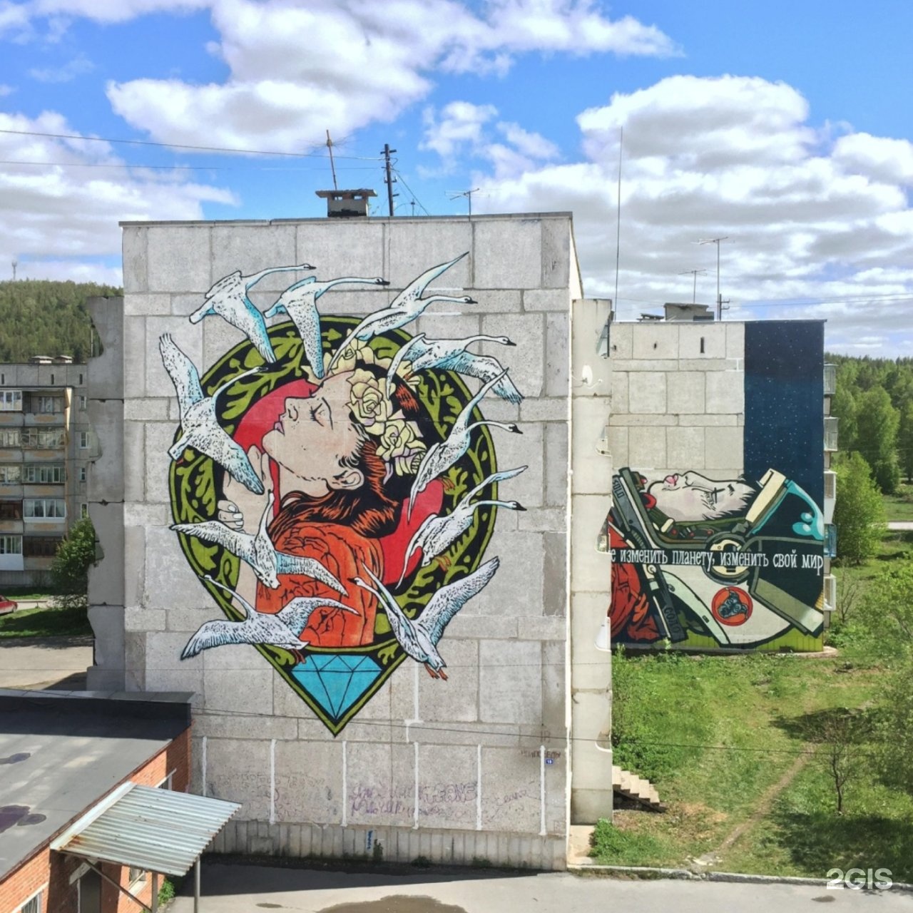 Одно из самых тёплых граффити Сатки — работа художника из Германии Хендрика Байкирха.