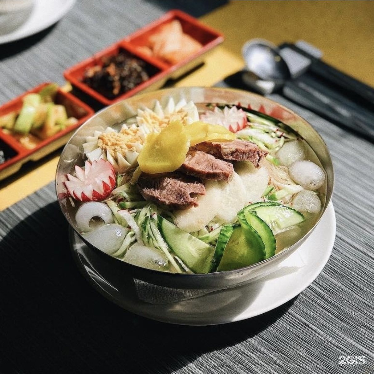 Кафе «Кимчи» на Бутырском Валу может похвастаться многостраничным меню, полным корейских специалитетов. Начнем, конечно, с панчанов, не пропустим кровяную колбасу сунде, рисовые палочки ток покки и паровые пирожки тинпаны. В разделе супов ждет десяток непонятных слов. Как вам ёно сучеби, например? Практика покажет, что рыбный суп с клецками и водорослями.