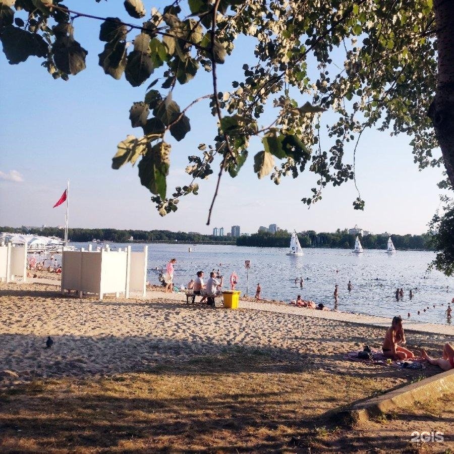 Инфраструктура пляжа не ограничена туалетами, кабинками для переодевания и небольшим количеством деревянных шезлонгов. Для отдыхающих есть горки, спортивные снаряды и футбольная площадка, а у воды — мангальные зоны. Если жарить шашлык не хочется, можно поесть в ближайшем кафе, которое работает в многоэтажке в 200 метрах от пляжа.