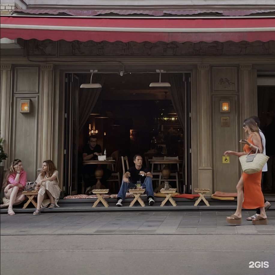 Убежище от дороговизны и пафоса в окрестностях Патриарших прудов — это маленькое кафе. Здесь милый интерьер в духе фильмов Уэса Андерсона: стены цвета мажорель и персикового цвета потолок, старый комод с книжками и домашними растениями, рисунки в наивном стиле, простая и душевная атмосфера. А главное — интересная и недорогая еда. Например, — швейцарские драники с моцареллой, трюфельно-сливочным соусом, пастрами, рукколой, слабосолёным огурцом и манго. Или иранские оладушки с лососем, яйцом пашот и ягодным соусом. Весь день кормят завтраками. Особого внимания заслуживают десерты и коктейли — такие же разноцветные и причудливые, как и всё в этом месте. Выбор вина небольшой. Зато фишка заведения — можно заказать гигантскую порцию игристого в тяжёлом гранёном бокале размера XL.