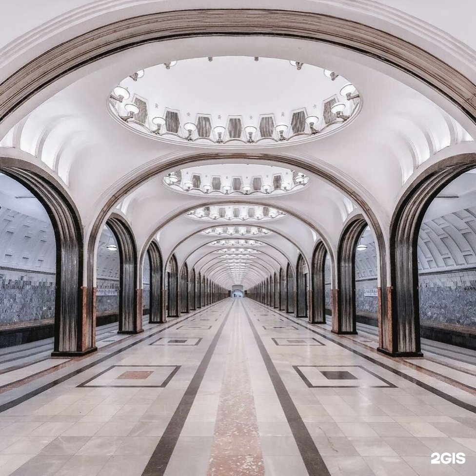 Открытая в 1938 году «Площадь Революции» — не cтолько станция, сколько скульптурная галерея. Некоторые архитекторы считают, что 76 скульптур, изображающих советский народ, сделали станцию слишком тяжёлой и душной. Так считал и архитектор станции Алексей Душкин. Других критиков смущает нечаянный символизм скульптур: чтобы уместиться в ниши, представители советского народа изображены согнутыми, коленопреклонёнными или сидящими.