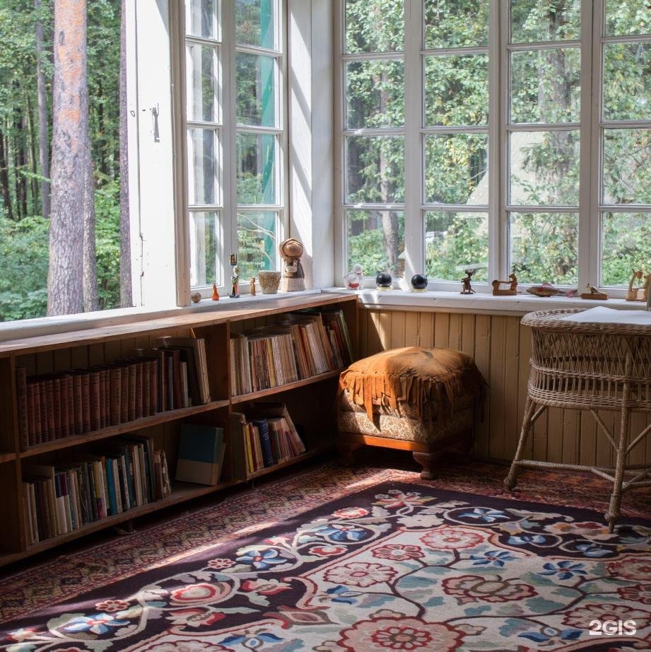 Дачный домик, в котором Чуковский прожил много лет, стоит среди сосен в глубине поселка писателей в Переделкине. Под ногами хвоя, у крыльца — живое чудо-дерево, увешанное детской обувью. Внутри уютно. Легко представить, как тут жили люди, стряхивали снег с валенок в прихожей, грелись с мороза в библиотеке. Говорят, гостям Чуковский показывал сувениры со всего света.