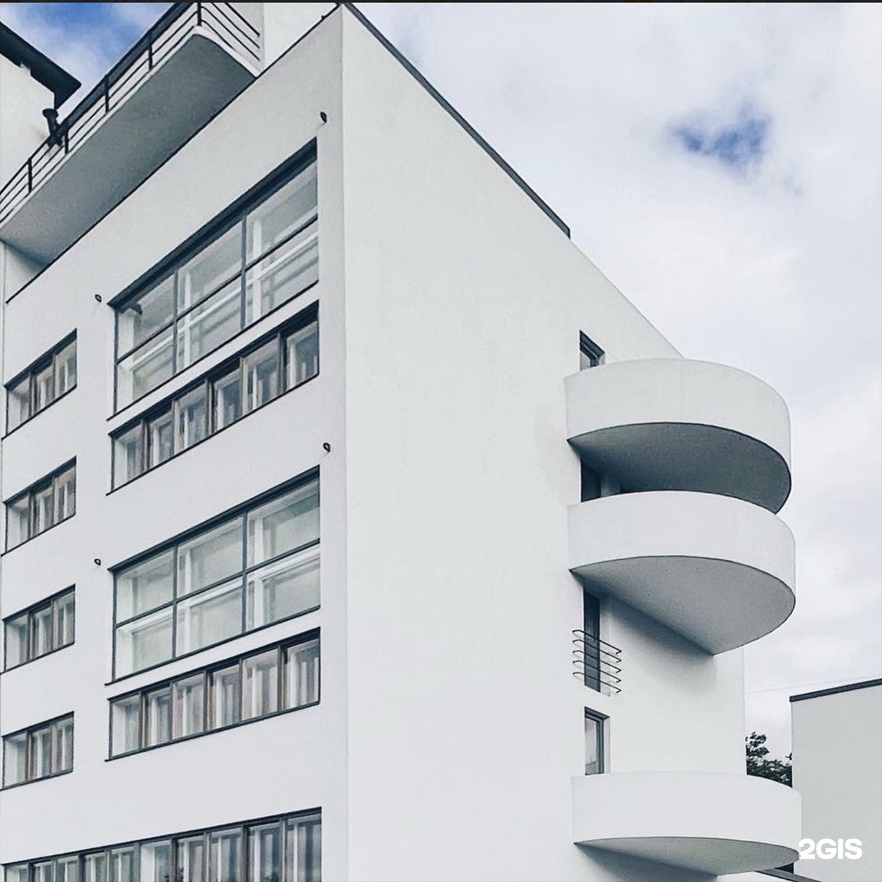 В 1928 году нарком финансов СССР Николай Милютин заказал дом для сотрудников своего ведомства одному из ключевых архитекторов-конструктивистов Моисею Гинзбургу. Архитектура конструктивизма готовила людей к новому обществу, где индивидуальное целиком подчинено общественному. Таков и дом Наркомфина: обширные общественные пространства (крыша, прогулочная галерея), стандартизация квартир-ячеек, отсутствие кухонь при наличии общей столовой. Один вход для всех жителей: от наркома до обслуживающего персонала. Внутри — коридоры с непрерывным остеклением (любимый прием архитекторов авангарда). Каждый коридор ведёт в квартиры сразу на двух этажах (внутри квартир — лестницы вниз или вверх). Так сэкономили внутренний объём плюс получили возможность сделать квартиры с окнами на обе стороны. В 1990-е дом пришёл в упадок, — но в 2017–2020 годах его реконструировали и превратили в элитное жильё. Внутрь можно попасть с экскурсиями от музея Garage.