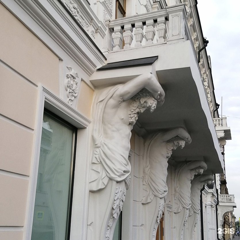 Доходный дом купца Расторгуева 1882 года постройки украшают атланты, львиные маски и жезлы Меркурия. До революции на первом этаже были чайный магазин и типография. Выше сдавались квартиры: по две на этаж. Сейчас дом реконструирован под элитную недвижимость (от 150 млн за однокомнатную).