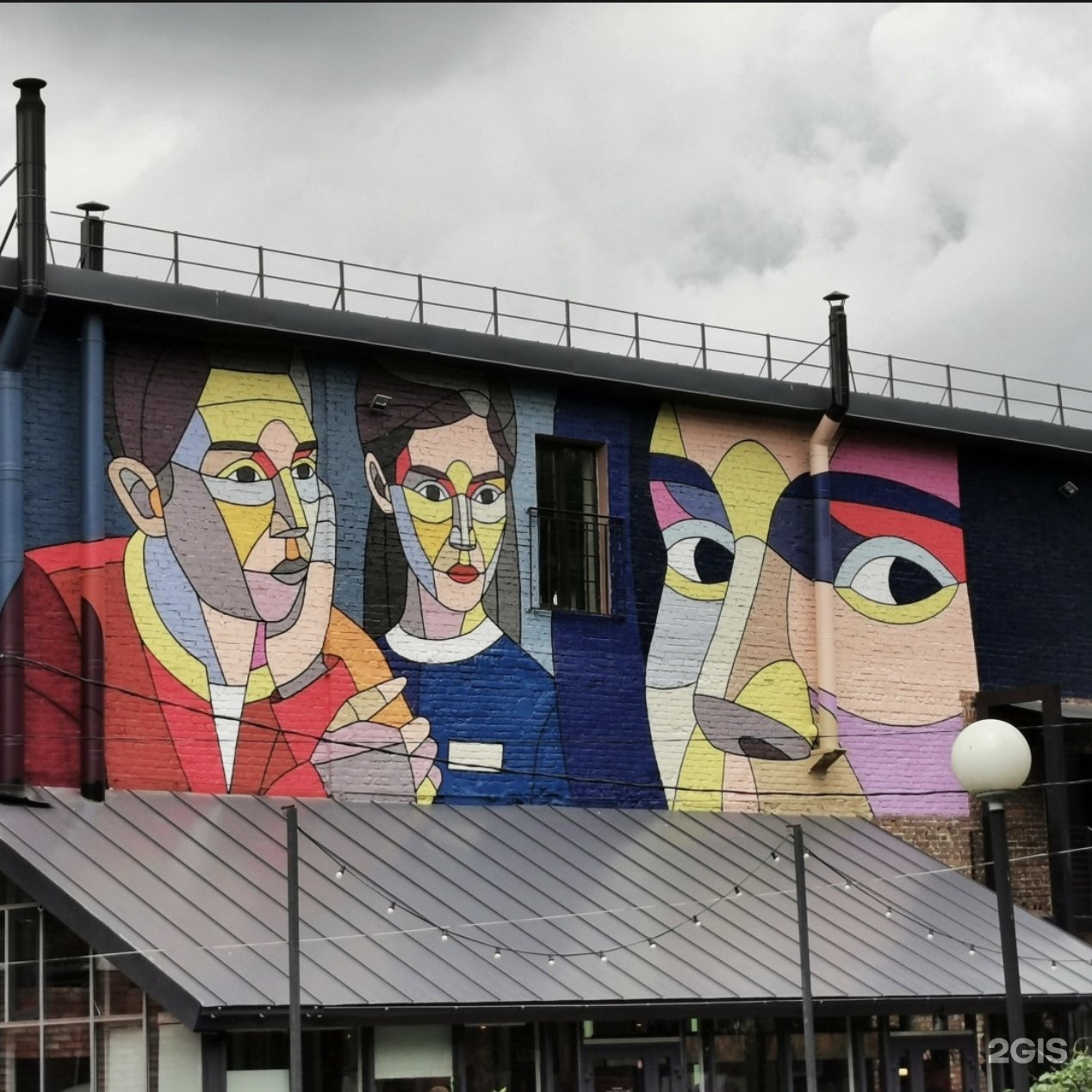 Созданный в рамках фестиваля «Место-2020» мурал художника Алексея Kislow из Севастополя — метафорический портрет Нижнего Новгорода, полный символов и отсылок для знающих. Некоторые символы — исторические, — например, мир Нижнего Новгорода на плечах держат атланты-бурлаки. А некоторые — современные и отсылают к неформальным достопримечательностям Нижнего. Среди них — бабушка, которая поёт песни на Покровке, и столетний ясень, который растёт на стадионе «Водник».