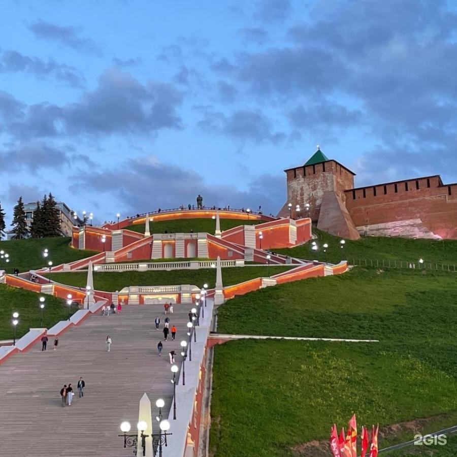 Отсюда можно отправиться на водную прогулку на «Валдае», «Метеоре» или «Экоходе». Или на променад по Нижне-Волжской набережной, которая тянется вдоль реки на 3 километра. Бонусы места: интересная старинная архитектура и Чкаловская лестница у Кремля, построенная в 1949 году пленными немцами. Она долго была самой длинной в России (сейчас это звание носит красноярская лестница на Торгашинский хребет). Поднимаясь по ней, можно сделать красивые фото.