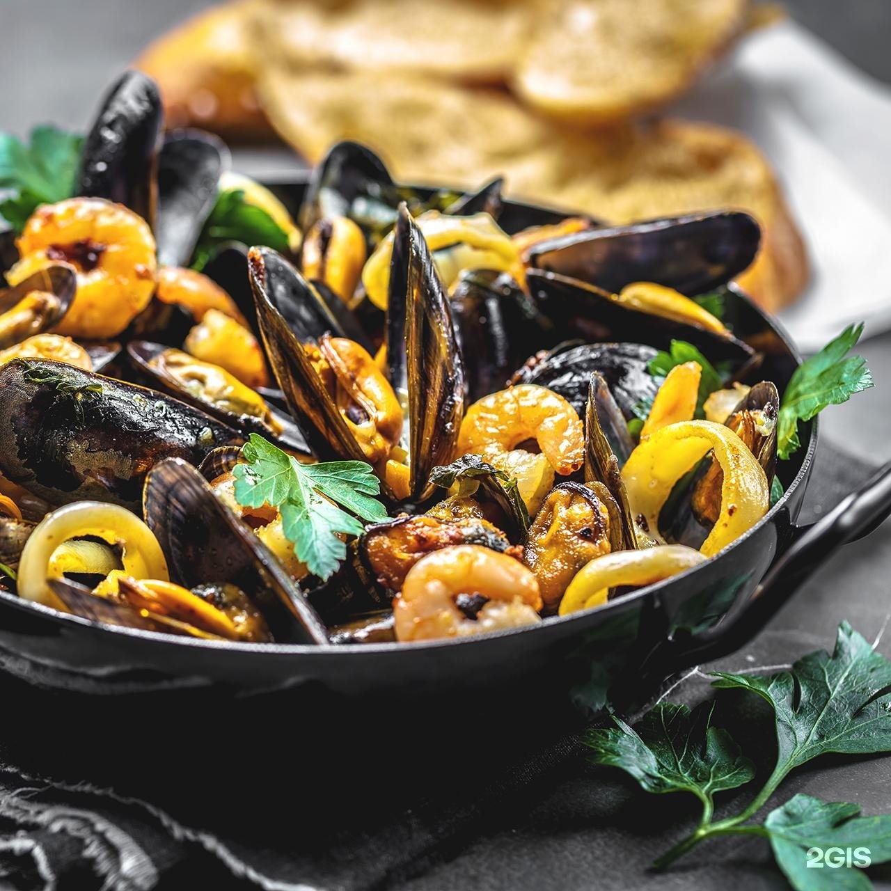 Лучший ресторан 2025 · Чек 1500 ₽ · Средиземноморская кухня · Том-Ям · Салаты · Супы · На гриле · Наггетсы · Мидии · Устрицы · Кофе с собой · Доставка