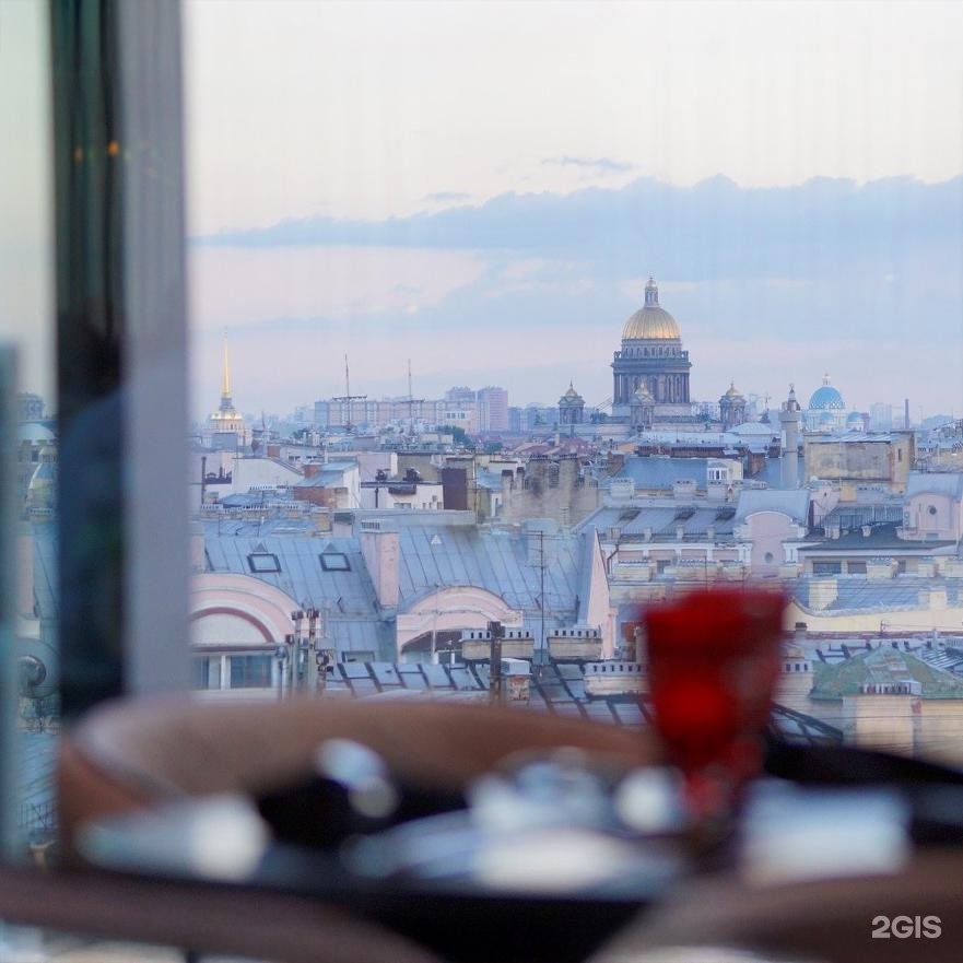 Панорамный ресторан с романтичным видом на Невский проспект и обширным меню. Если от петербургского воздуха вам вдруг нестерпимо захотелось навернуть шавермы, но вы слишком солидны, чтобы делать это на улице, — можете заказать её здесь, классическую или с карри, за 430 рублей.