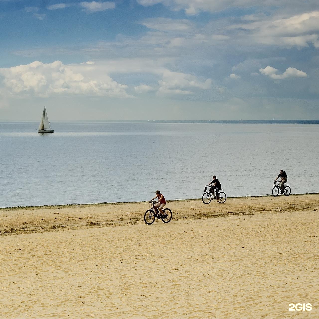 Самый большой пляж всего Курортного побережья — и один из лучших на Курортном побережье. Есть деревянные дорожки для ходьбы, кабинки для переодевания, детская и волейбольные площадки, кафе. Пляж украшают современные скульптуры. Устроить барбекю или просто пожарить шашлык можно в зоне со столиками и мангалами. Есть и специальная кемпинговая зона для тех, кто приехал с палаткой и хочет заночевать. Перед пляжем есть большая парковка.