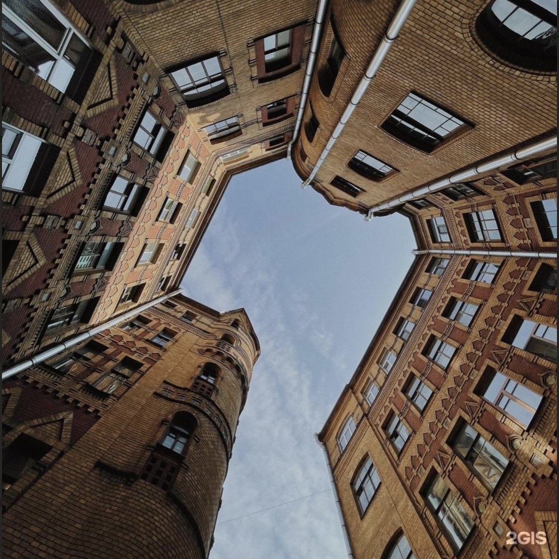 Дом интересен со всех сторон — у него есть ещё и двор-колодец примечательной формы (правда, ворота закрыты).