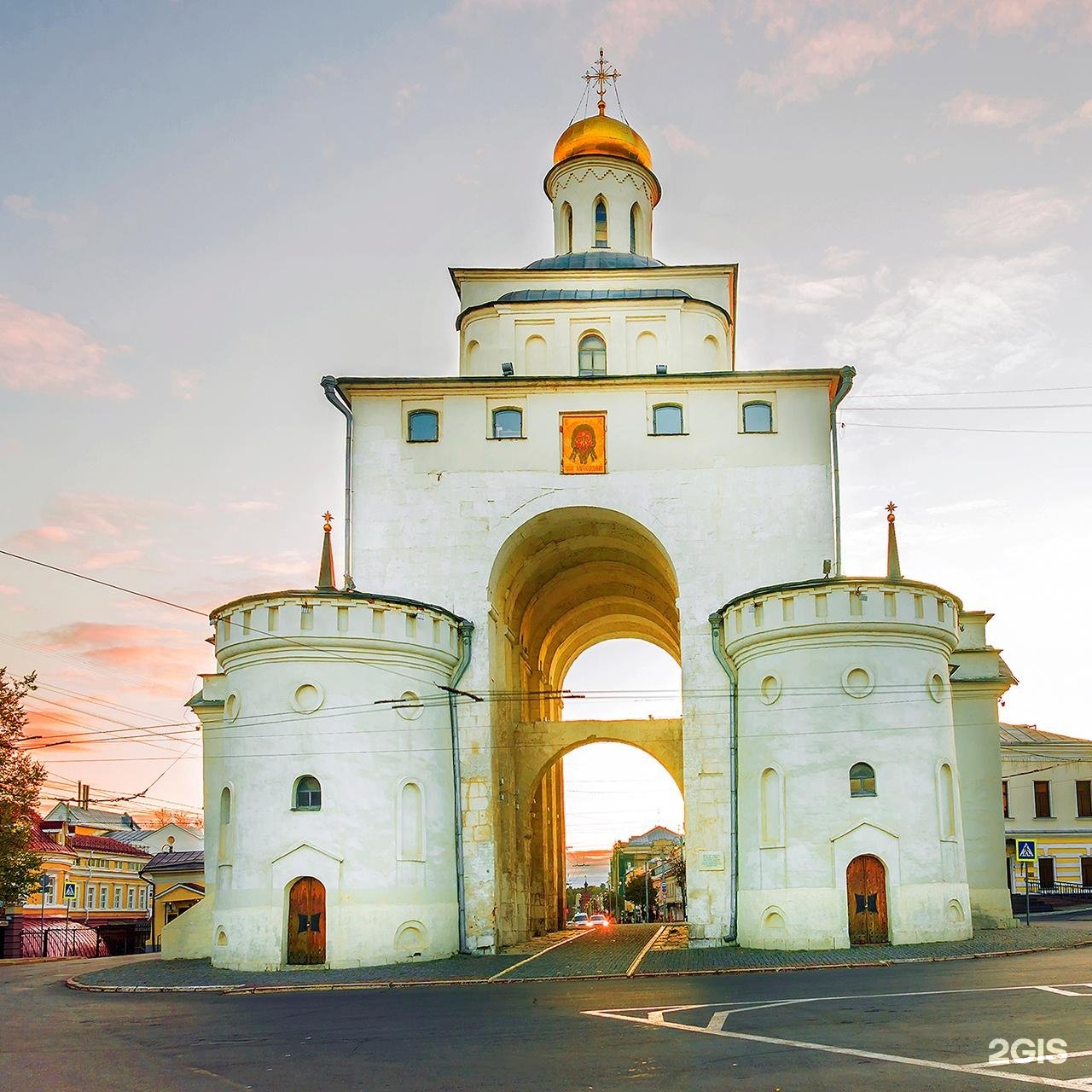 Возведённые в 1164 году Золотые ворота — редчайший памятник древнерусской боевой архитектуры. Это и оборонительная башня, и парадный въезд в самую богатую часть города, и триумфальная арка, да ещё и с надвратной церковью. С древности ворота сильно изменились: например, полукруглыми опорами по углам их укрепили в начале XIX века. По легенде ворота были обшиты листами из золота (вероятнее, — золочёной меди), но их спрятали от монголо-татар так хорошо, что не могут найти до сих пор.