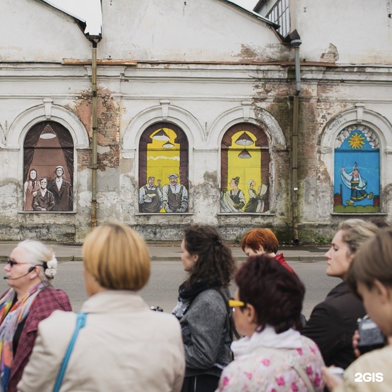 Во дворах рядом с ДК «Красный перекоп» есть пара примеров того, как человек может покрасить место, — и превратить бетонный забор в яркий паззл. Так поступили жильцы домов по адресу Стачек, 55 и 61. Дом по адресу Стачек, 61, кстати, примечателен своей историей: бывший склад хлопка стал жилым домом в годы войны, когда требовалось дополнительное жилье.