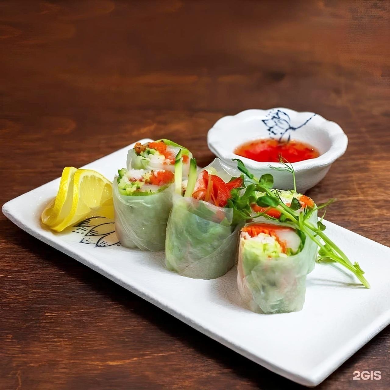 Говорят, здесь делают чуть ли не самые вкусные роллы и суши в городе. В меню есть и другие блюда — особенно гости советуют салат с водорослями вакаме и осьминогом, пенне с лососем, гёдза, сливочный суп с крабом, тёплый салат с гребешком. В общем, здесь точно стоит пробовать блюда с морепродуктами. А ещё в меню — несколько видов раменов. Для детей есть более привычная еда: пицца, паста, картофель фри.